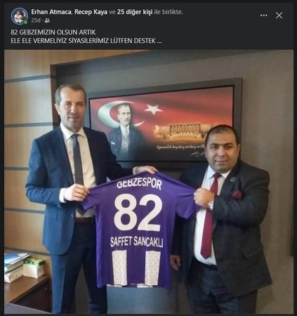 MHP Kocaeli Milletvekili ve Milli Savunma Komisyonu Sözcüsü Saffet Sancaklı’nın, Gebze’nin il olması için temaslarda bulunduğu öğrenilirken Gebze’li isimlerden de Sancaklı’ya destek geldi. İşte o desteklerden biri de 82 numaralı Saffet Sancaklı formasıydı. Gebze’nin il olmasını isteyen isimlerden biri olan Erhan Atmaca, 82 il kodunun Gebze’ye verilmesini istediklerini dile getirerek Saffet Sancaklı’ya Gebzespor forması hediye etti.
