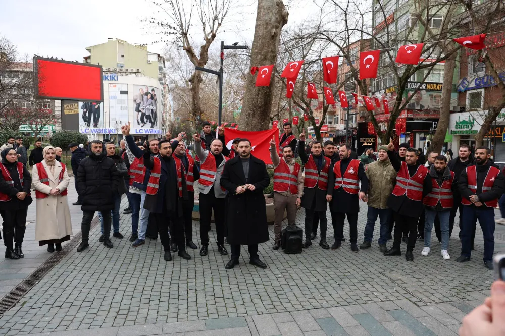 Basın açıklamasına BBP Çayırova İlçe Başkanı Oğuzhan Türkoğlu ve Çayırova BBP üyelerinin yanı sıra çok sayıda Alperen katıldı