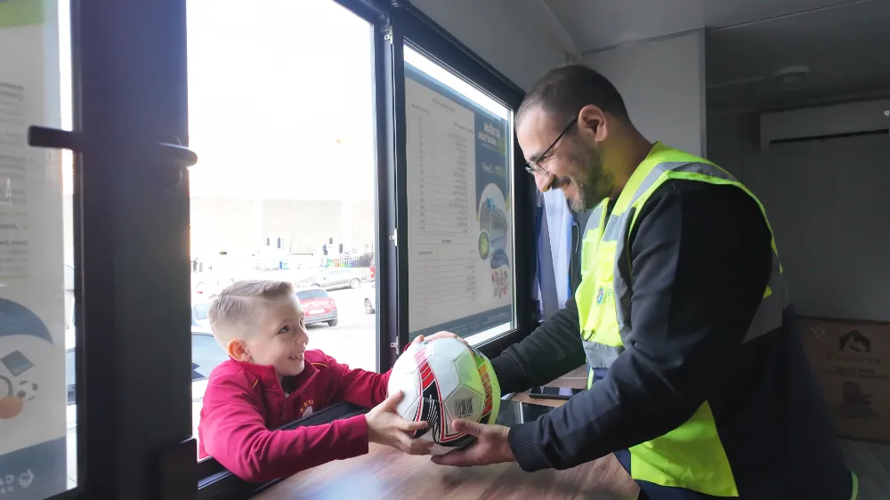 Atığın Sıfır Noktası’na getirdiği atıklar ve topladığı puanlarla bugüne kadar satranç takımı, basketbol ve futbol topu kazanan Kuzey Külte, yaptığı açıklamada, “Atığınızı getirin, hediyenizi götürün ben ödül kazandım şimdi sıra sizde. Pazara gidiyorduk annemle ve giderken Atığın Sıfır Noktası’nı gördük. Bu zamana kadar cam getirdim, plastik getirdim, pil getirdim, karton ve kağıt getirdim. Bu sayede topladığım puanlarla da futbol topu kazandım, basketbol topu kazandım bir de satranç takımı aldım. Yeni hedefim de tablet olacak” ifadelerini kullandı.