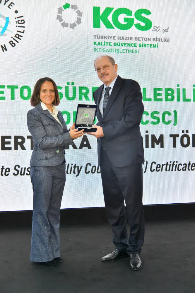 Törende, “Platin” seviyede CSC sertifikası alan Akçansa AGG Bursa Agrega Tesisi ve Limak Çimento Anka Çimento Fabrikası; “Altın” seviyede CSC sertifikası alan, Çimsa Mersin ve Eskişehir Çimento Fabrikaları, Alton Beton Şile Agrega Tesisi ve Şile Hazır Beton Tesisi, Danış Madencilik Agrega Tesisi, Çimsa Misis Hazır Beton Tesis, Akçansa Betonsa Nilüfer ve Gebze Hazır Beton Tesisleri, Albayrak Beton Yenidoğan Tesisi, Akçansa Büyükçekmece ve Ladik Çimento Fabrikaları, Alevtaş Madencilik Saray Agrega Tesisi ve Limak Çimento Güvercinlik Tesisi; “Gümüş” seviyede CSC sertifikası alan Medcem Silifke Çimento Fabrikası ve İSTON Tuzla Tesisi ve “Bronz” seviyede CSC sertifikası alan Seza Çimento Elazığ Fabrikası, Nuh Beton İzmit Tesisi, Çimko Beton Altınşehir, Osmaniye ve Kahramanmaraş Tesisleri’ne sertifikaları takdim edildi.