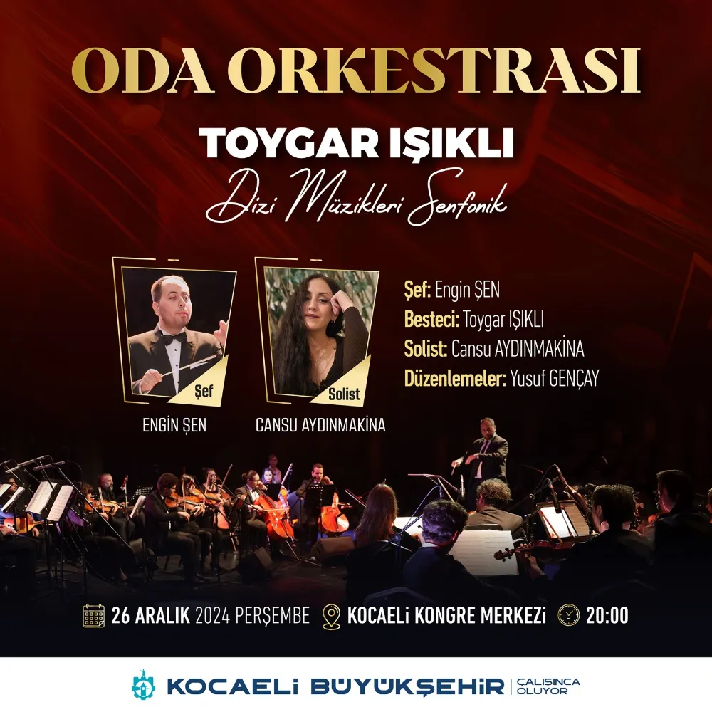 Kocaeli Büyükşehir Konservatuvarı Oda Orkestrası, “Aşk-ı Memnu”, “Yaprak Dökümü” ve “Ezel” gibi dizilerin müziklerini yapan Toygar Işıklı’nın eserlerini senfonik ortamda yorumlayacak.