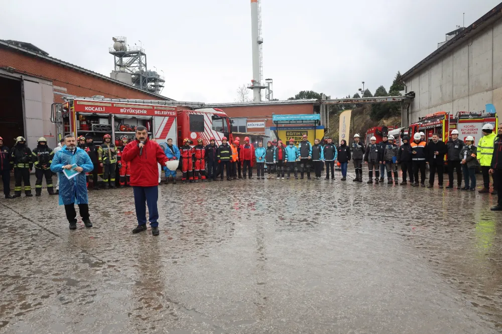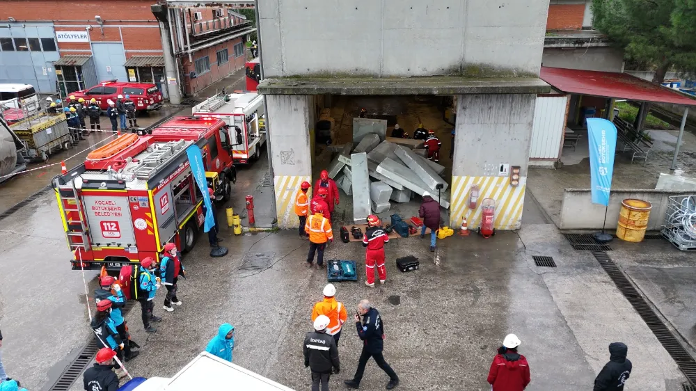 Kocaeli Büyükşehir Belediyesi, tüm daire başkanlıkları ve iştiraklerin de katıldığı büyük bir deprem tatbikatını başarıyla gerçekleştirdi. İZAYDAŞ Genel Müdürlüğü’nün merkez olduğu tatbikata Büyükşehir’in il genelindeki tüm birimlerinden 15 bin personel katıldı. Büyükşehir Belediyesi Afet Müdahale Planı’nın (TAMP) işlerliğinin test edildiği tatbikatta personellerin hızla tahliyesi, binadan ve enkaz altından yaralı kurtarma çalışmaları, belirlenen süre içerisinde başarıyla tamamlandı.