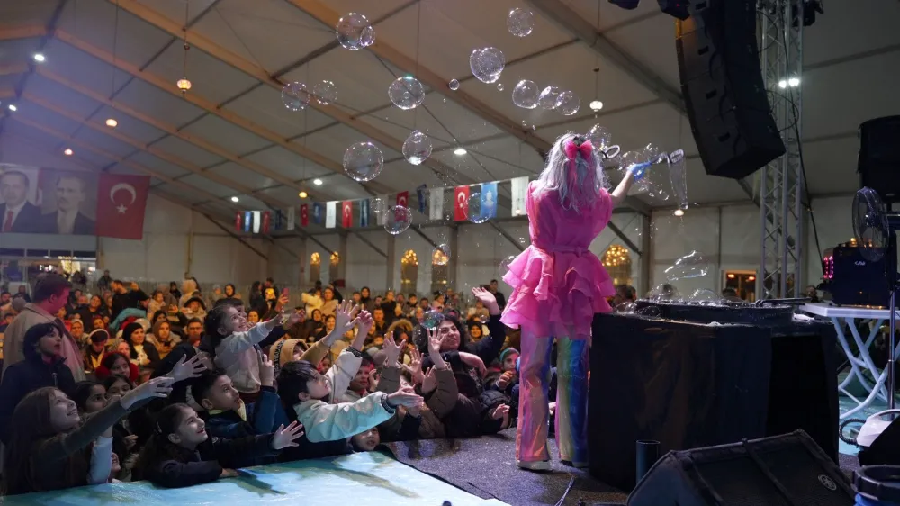 Günün en renkli etkinliği ise Bubble Şov oldu. Sahne önünde toplanan çocuklar şarkılar, şiirler ve oyunlara eşlik ederek gönüllerince dans etti. Sahneden gönderilen sabun baloncuklarını yakalamaya çalışan çocuklar kahkahalarıyla gönüllerde mutluluk yaşattı. Bu arada Ramazan şerbeti, patlamış mısır ve macundan oluşan Büyükşehir ikramları çadır dışındaki alanda vatandaşlara sunuldu.