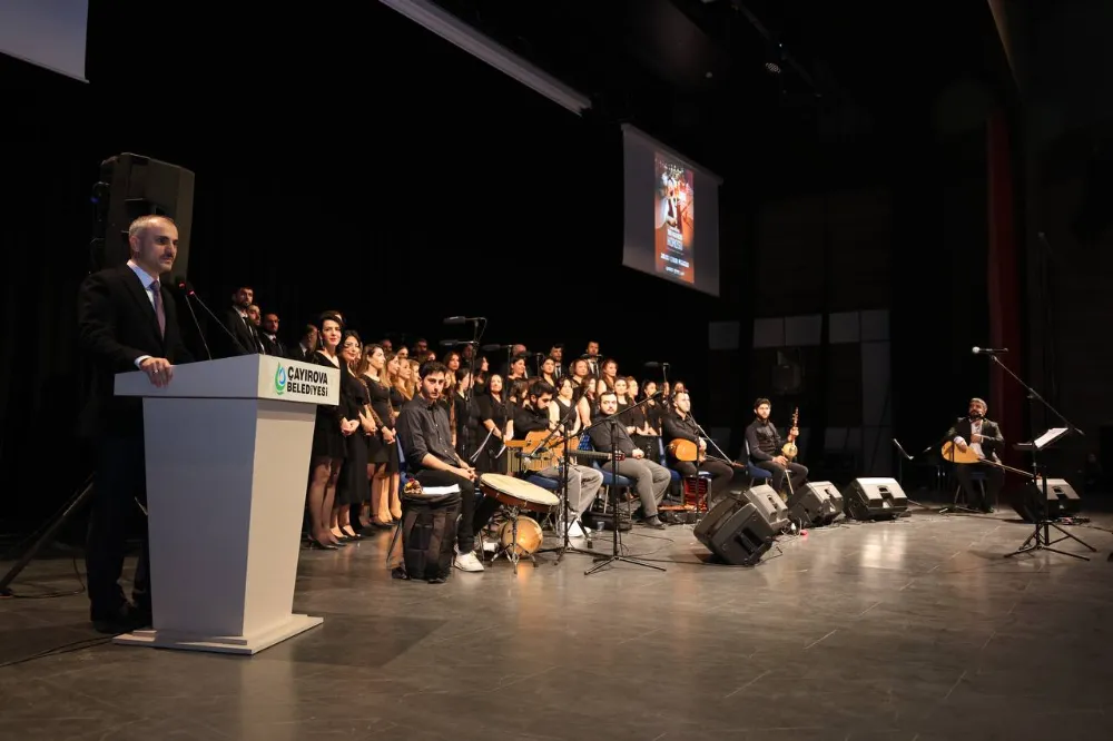 Kültür ve sanat şehri Çayırova’da muhteşem konser. Çayırova’daki yetenekli seslerden oluşan ve Şef Ünal Dursun eşliğinde çalışmalarına devam eden Çayırova Belediyesi Türk Halk Müziği Korosu, dün çok sevilen türküleri, ilçe sakinleri için seslendirdi. Prof. Dr. Necmettin Erbakan Kültür Merkezi’nde düzenlenen konseri Çayırova Belediye Başkanı Bünyamin Çiftçi, kent protokolü, meclis üyeleri ve çok sayıda Çayırovalı takip etti. Prof. Dr. Necmettin Erbakan Kültür Merkezi’nde düzenlenen konser etkinliğine katılım sağlayan ilçe sakinleri salonu doldururken, türkülerle yer yer hüzünlenip yer yer eğlendi. Renkli anlara sahne olan konser, kulakların pasını silerken, Türk Halk Müziği Korosu konseri öncesinde konuşma gerçekleştiren Başkan Çiftçi, Çayırova’yı kültür-sanat şehri yapma yolunda büyük adımlar attıklarını ve bunların de bir örneği Türk Halk Müziği Korosu olduğunun altını çizdi.