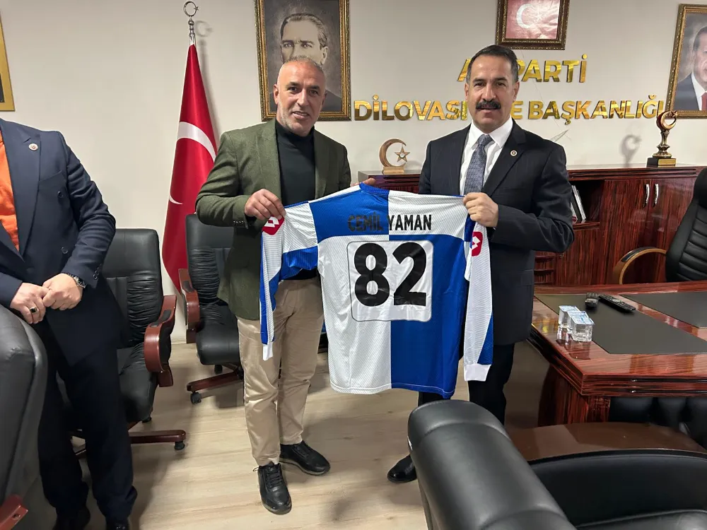İlçe Başkanlığı ziyareti sırasında Milletvekili Cemil Yaman ile bir araya gelen Dilovası Belediyespor Kulübü Başkanı Recep Laç ile aynı zamanda kulübün Teknik Direktörü olan Belediye Meclis Üyesi Suat Şık üzerinde “İyi ki Kocaeli’liyim” yazan 82 sırt numaralı kulüp formasını Yaman’a hediye ettiler.