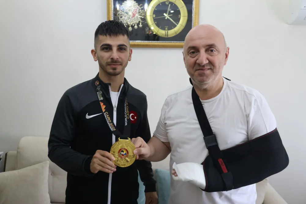 2025 yılında alınmadık kupa ve madalya bırakmayan Darıca Belediyesi Eğitim ve Spor Kulübü’nin milli sporcusu Eray Şamdan, Mısır’da düzenlenen Dünya Karate Şampiyonası’nda altın madalyayı kazanarak dünya şampiyonu olurken ayağının tozuyla madalyasını Darıca Belediye Başkanı Muzaffer Bıyık’a getirdi. Geçirdiği operasyon sonrası evinde istirahat eden Başkan Muzaffer Bıyık, milli sporcuyu ağırlarken Eray’ın başarılarıyla gurur duyduklarını ifade etti. Şamdan’a ziyaretinde antrenörü ve babası Adnan Şamdan ile Darıca Belediyesi Eğitim ve Spor Kulübü Başkanı Enver Demirci ve Darıca İlçe Gençlik ve Spor Müdürü Resul Kotan da eşlik etti.