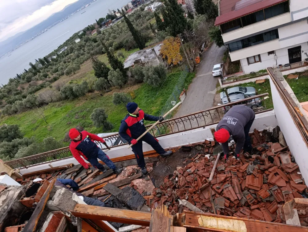 Şehit ailesinin fırtına nedeniyle risk oluşturan kırık kiremit ve molozların temizlenmesi talebi üzerine harekete geçen Büyükşehir Belediyesi Yol ve Bakım Dairesi’ne bağlı Tesisler Şube Müdürlüğü ekipleri, olay yerine gelerek keşif yaptı. Yerinden oynayan kiremitler ve molozlar, gerekli güvenlik önlemlerinin alınmasıyla hızlı ve kontrollü şekilde kaldırdı.