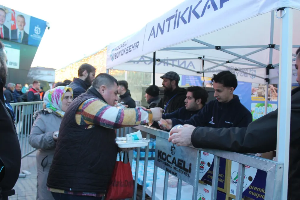 Büyükşehir Belediyesi’nin Gebze Kent Meydanı’nda kurduğu Ramazan çadırı, son iftara kadar misafirlerini ağırlamaya devam edecek. Bereketli iftar sofralarında buluşan vatandaşlar, paylaşmanın ve dayanışmanın sıcaklığını Ramazan’ın son gününe kadar yaşamayı sürdürecek.