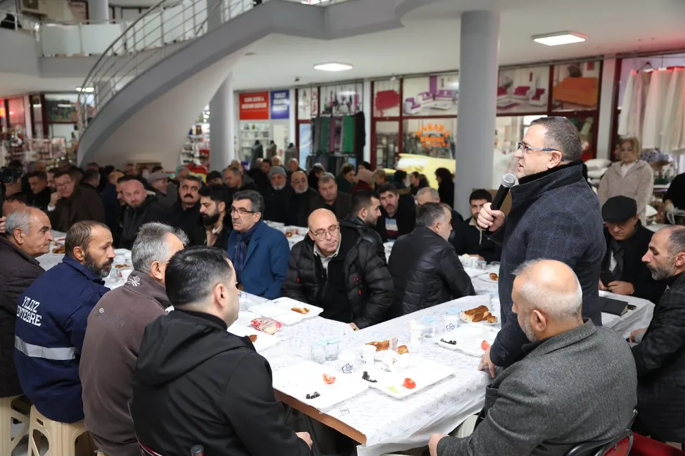 Katılımlarından dolayı esnaflara teşekkür eden Başkan Gökçe, “Bu sofrayı bizimle paylaştığınız için hepinize çok teşekkür ediyorum. Sizlerle bir arada olmaktan mutluyuz. Daha önce sizleri en kısa sürede ziyaret edeceğimi söylemiştim ama biraz gecikmeli oldu. Belediyeye bugüne dek on binlerce ziyaretçimiz geldi. Ziyaretlerin ardından ilk fırsatta esnaf buluşmalarımıza başladık. Önceki gün Denizciler Caddesi esnaflarımızla beraberdik bugün sizlerle bir aradayız. Seçim öncesi söz verdiğimiz gibi biz yapacağımız her çalışmayı sizlerle beraber belirleyeceğiz. Eğer bir yerde değişiklik ve yeni bir çalışma yapacaksak bunu o bölgede bulunan, sorunu bizzat yaşayan ve çözümü de kendisi öneren vatandaşlarımızla, esnaflarımızla beraber çözeceğiz” dedi.