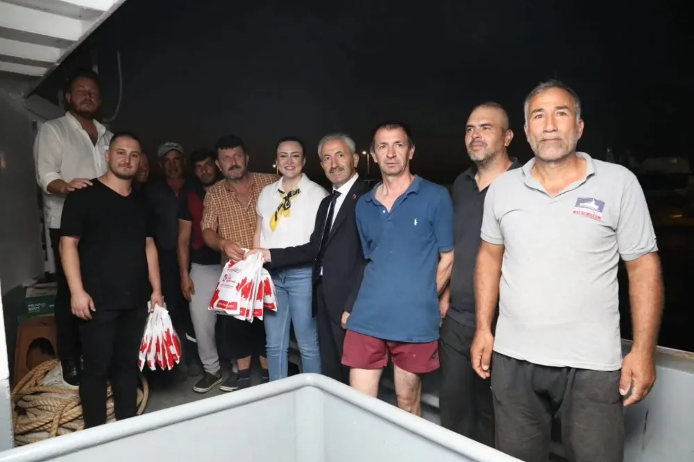 1 Eylül Balıkçılık Sezonu açılışında balıkçıları unutmayan Halkla İlişkiler Müdürlüğü Karamürsel’deki balıkçıları ziyaret ederek önlük hediye etti.