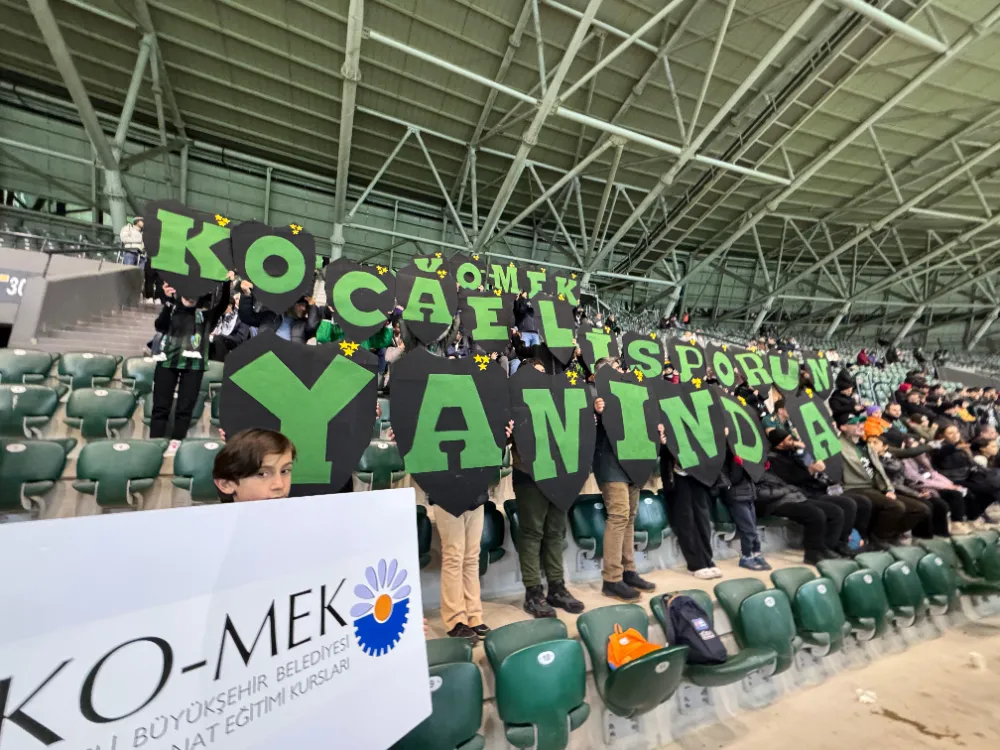 Kentin gurur kaynağı olan Kocaelispor’a destek olmak için günler öncesinden hazırlanan KO-MEK eğitmenleri maç boyunca takıma desteğini sürdürdü. KO-MEK’te görev yapan keçe branşı eğitmenlerinin kendi elleriyle hazırladığı “KO-MEK Kocaelispor’un Yanında” pankartlarıyla tribünlerde yerini alan KO-MEK eğitmenleri aileleri ile birlikte takıma destek verdi.