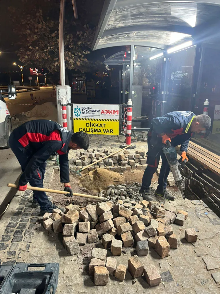 Kocaeli’de yeni yol, köprü ve kavşak, raylı sistem ve toplu taşıma yatırımları ile ulaşım sorununa çözümler üreten Büyükşehir Belediyesi, yaya trafiğinde de konfor ve güvenliği artıracak birçok çalışmayı hayata geçiriyor. Bu kapsamda Büyükşehir ekipleri, İzmit Ömer Türkçakal Bulvarı’nda 41 AVM önündeki yolcu bekleme duraklarının parke zemininde yenileme çalışması yaptı. Akçaray terminal kapısı önünde hasar gören tretuvar da onarılarak, yayaların güvenli şekilde kullanabileceği hale getirildi.
