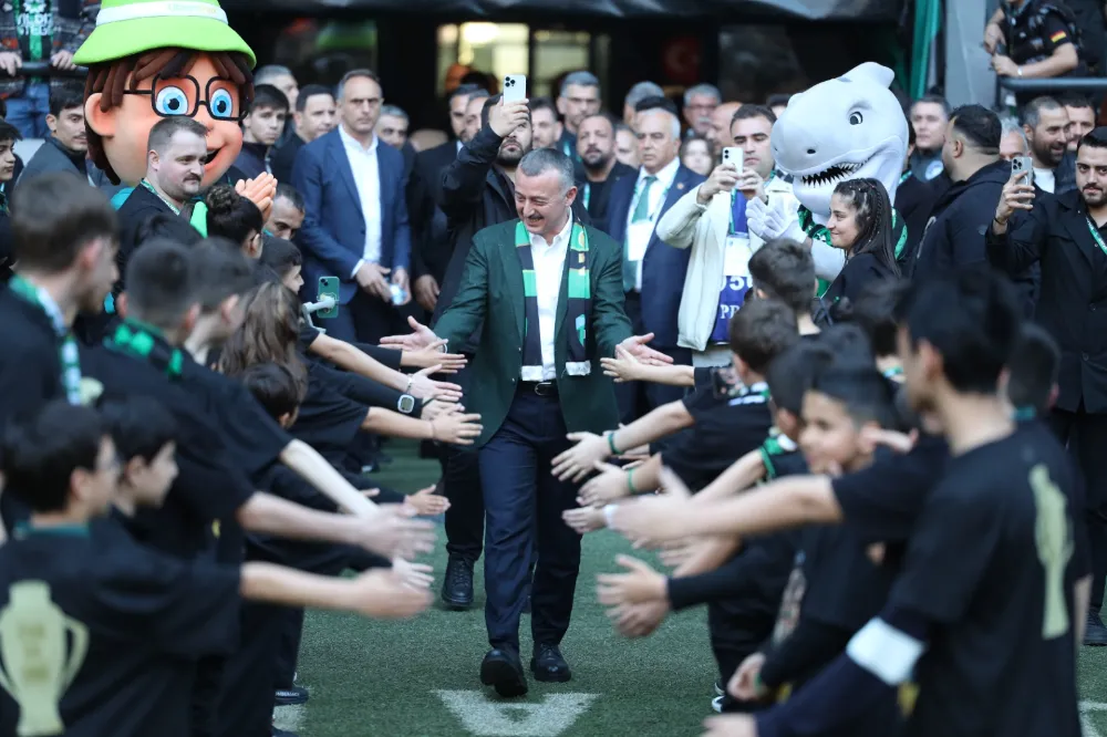 Kupa töreninde Yeşil-Siyahlı taraftarların alkışları eşliğinde platforma gelen ve Kocaelispor’un şampiyonluğunu bir kez daha kutlayan Başkan Büyükakın, “Büyük Kocaelispor taraftarı, sizi saygı ve muhabbetle selamlıyorum. Şehrimiz için tarihi bir gün, yeni bir milat. 16 yıl sonra Süper Lig’e çıkmanın onurunu ve gururunu yaşıyoruz. Kupadaki en büyük pay taraftarındır. Amatörden buraya gelene kadar hiç vazgeçmediniz. Körfez’in arkasında durdunuz. Bunu sizin sayenizde yaşıyoruz. Hepinizi yürekten tebrik ediyorum. Bu başarıda taraftardan sonra tüm başkan, futbolcu, teknik ekibi ve emeği geçen tüm arkadaşlarımı tebrik ediyorum” dedi. Başkan Büyükakın konuşmasının ardından tribünlere şampiyonluk üçlüsü çektirerek, “Oley Kocaelispor” şeklinde tempo tuttu.
